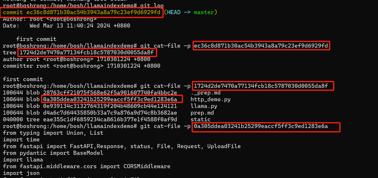 使用 git cat-file -p 某次object的hash值 可以查看相应具体内容