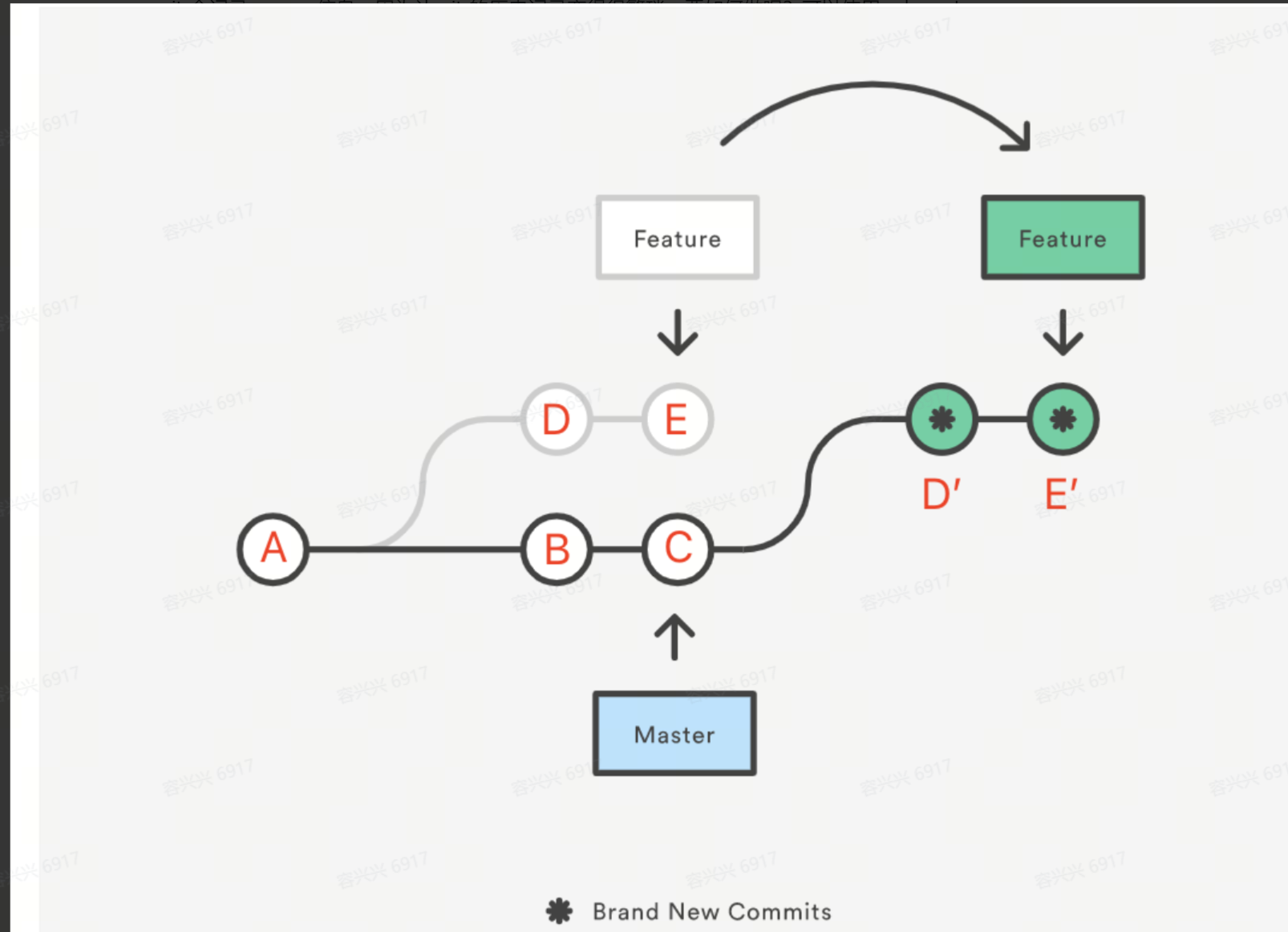rebase的执行过程是首先找到这两个分支(即当前分支Feature、rebase操作的目标基底分支Master) 的最近共同祖先提交 A,然后对比当前分支相对于该祖先提交的历次提交(D 和 E),提取相应的修改并存为临时文件,然后将当前分支指向目标基底Master所指向的提交 C, 最后以此作为新的基端将之前另存为临时文件的修改依序应用。Git rebase 时出现冲突,解决冲突后,git add 后执行git rebase –continue 不要 commit, git rebase 是按照一条一条执行的 commit 信息的。 如何在 rebase 多次提交时防止多次 git 冲突?